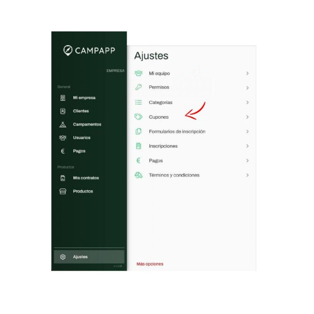 Para crear cupones descuento haga clic en el botón Ajustes situado en la parte inferior izquierda de la pantalla, seguido haga clic en cupones y por último en + Añadir situado en la parte superior derecha de la pantalla.